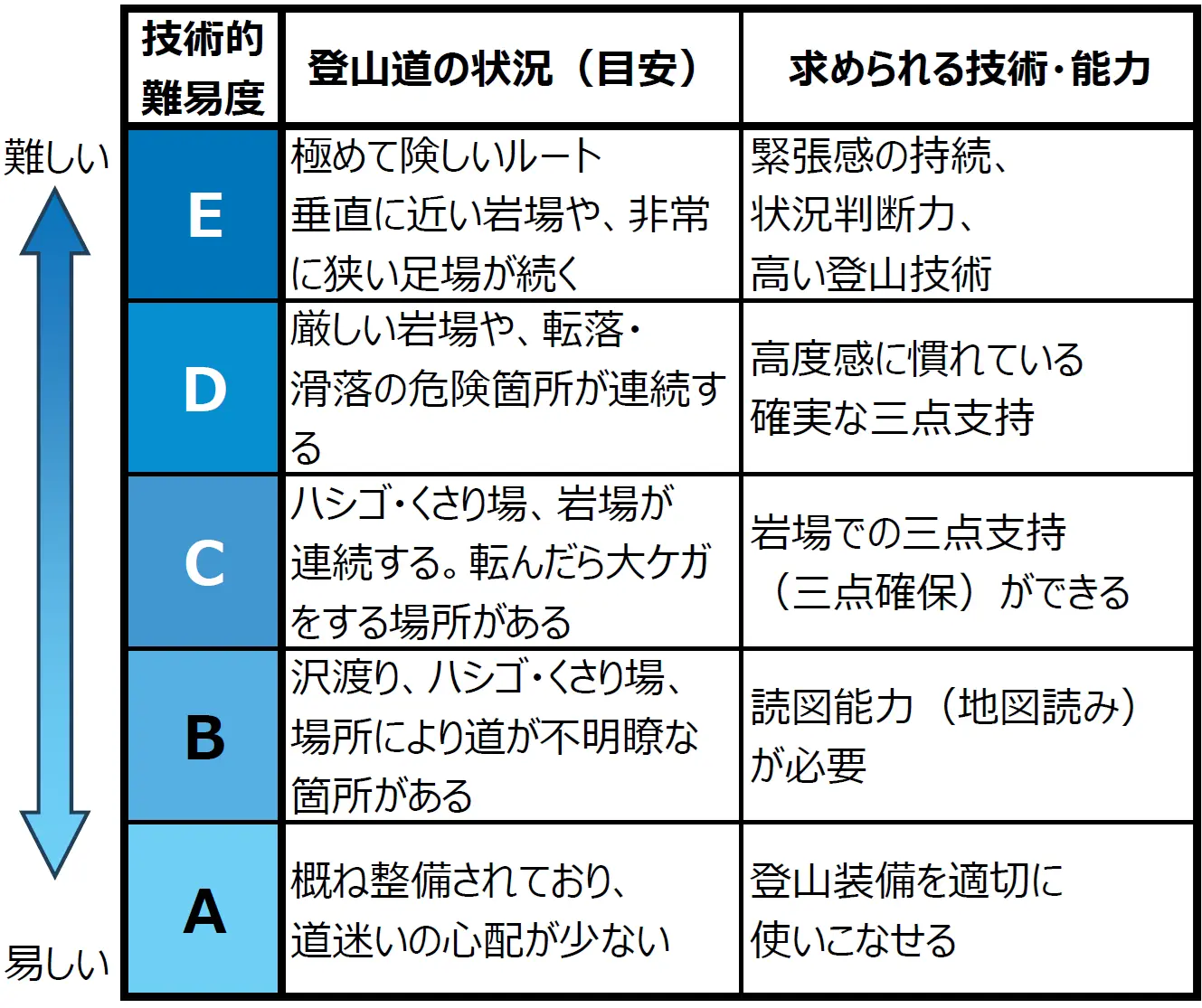 ・事故・遭難を防止するために作成された、登山ルートの難易度評価(格付け)です